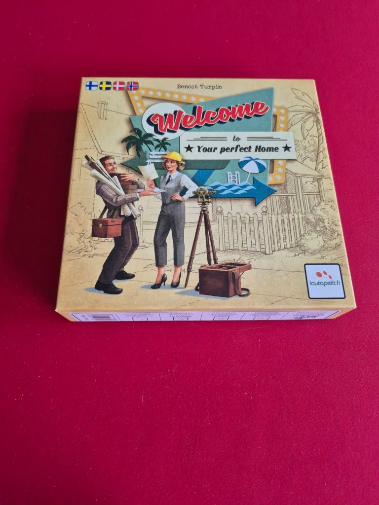 Welcome to… is a game with a mechanic called “flip and write”. You flip cards to get a few options to take a thing from and write down on your sheet of paper. A small box, pretty cheap and alot of fun gameplay.