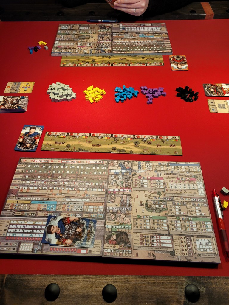 Clank! is a deckbuilder in which you also have a huge board on which you move your characters and try to get treasuers and go back to you tavern, and in this game expands ALOT of the board and change what happens on different locations. Some towns are destroyed, other places become volcanoes and the board becomes a mess. But a good mess! There is so much to do and so many different things that happen.